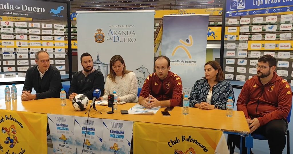 Una competición pionera en el balonmano español que presentada hace unas jornadas en la mismísima cancha arandina donde se desarrollarán la competición. El presidente de ASOBAL, Servando Revuelta; la concejala de Deportes, Belén Esteban; la directora del ASADEMA, Rosa Figuero; además de los responsables del equipo inclusivo de la entidad amarilla: Antonio Minguito y Rodrigo García destacaron la importancia del deporte en este tipo de situaciones y la necesidad de contar con citas como las de este sábado en otras localidades.