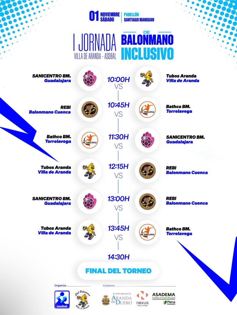 La jornada comenzará a las 10:00 horas el partido entre Guadalajara y Villa de Aranda. Un total de seis partidos de 20 minutos de duración que enfrentarán a todos los participantes para cerrar una jornada alrededor de las 14:00 horas con la entrega de trofeos.