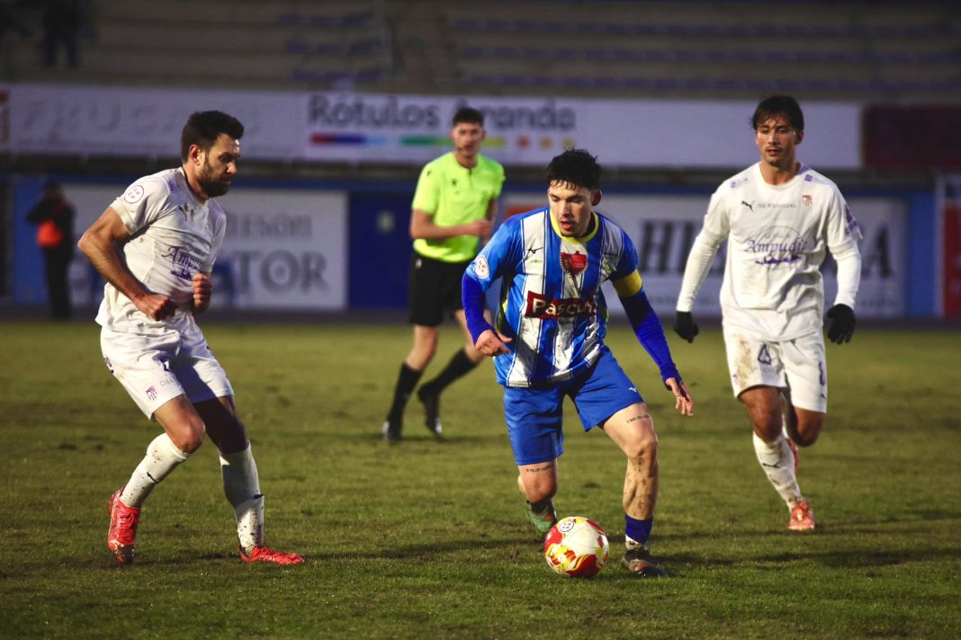 Los blanquiazules, con uno menos desde el minuto 27, aguantaron el empate hasta el tanto palentino a falta de seis minutos para el final