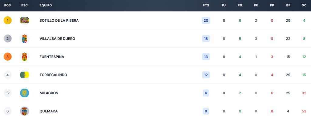 Estas dos próximas jornadas, Sotillo se enfrenta a Milagros -8 de febrero- y Torregalindo -15 de febrero-. Mientras, Villalba juega ante Torregalindo y Quemada, respectivamente.