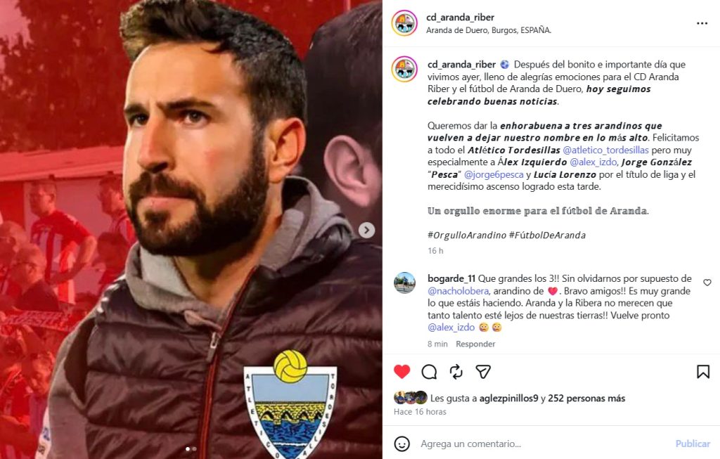 El fútbol arandino y de las Tierras del Duero cuenta con un personaje único, Álex Izquierdo. El entrenador formado en las categorías inferiores de la Arandina, consigue el segundo ascenso de su carrera deportiva tras lograrlo este fin de semana con el Atlético Tordesillas.